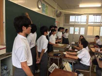 生徒会では、今日、7月の「拡大生徒議会」を開催しました。議題は、今月の目標や、文化祭、体育大会のテーマなどです。熱心な話し合いが行われました。