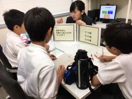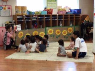 続いて、お邪魔したのは、保育所、銀行、図書館です。緊張した面持ちで取り組んでいます。