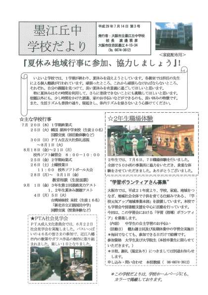 本日、「学校だより」7月号を配布いたしました。この学校だよりは、地域回覧板でも皆さんにご覧いただいています。