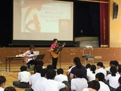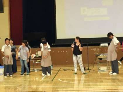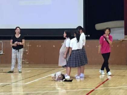 後半、最初は実技(妊婦ジャケットを着用)を通して、妊婦さんについて学びました。改めて、子どもがお腹にいるお母さんの苦労が分かりました。そして最後に「誕生日」という歌を聞いて、改めて、生命の誕生の尊さについて考えました。