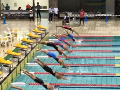 なみはやドームのプールは、大阪府内から集まった選手でいっぱいで次から次へとレースが行われます。そして夕方、今日、最初の決勝種目、女子800m自由形が始まりました。そして、見事、標準記録を突破し、鹿児島県で行われます、全国中学水泳大会への切符を手に入れました。