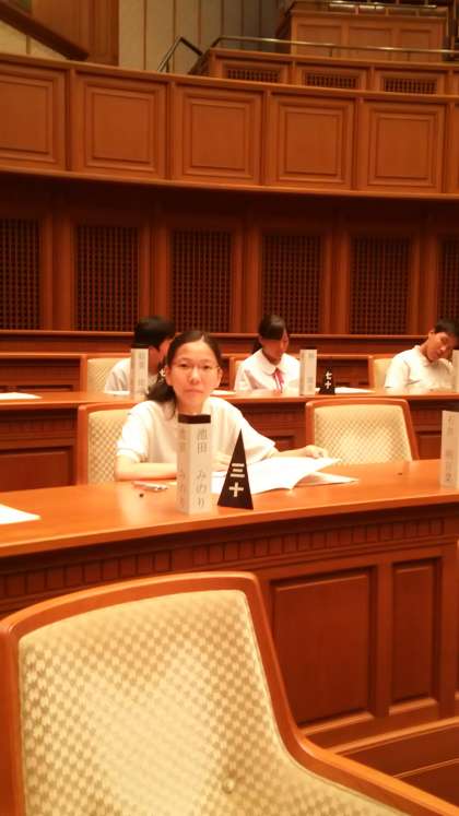 写真は、その議場でのリハーサルの様子です。毎年、中学生からは、市長さんに多くの質問や意見が出されます。本番は8月10日(木)午後2時からです。大阪市役所議場で開催されます。