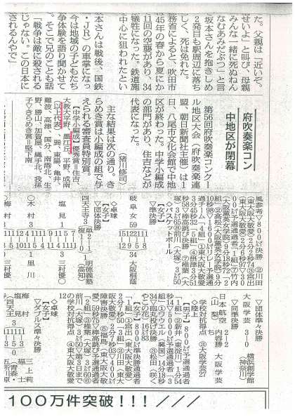 吹奏楽部では、中地区予選を突破し、次の府大会から関西大会出場を目指して猛練習に励んでいます。地区代表が、新聞でも発表され、ますます気合が入って来ています。