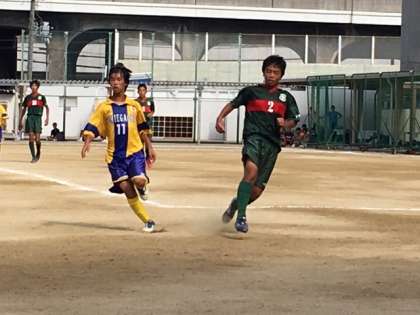 後半に入り、フリーキックを与えてしまい、そのキックがゴールとなり、得点を許してしまいました。結果、これが決勝点となり、0−1で惜しくも敗れてしまいました。この後、本校は、順位決定戦に臨みます。