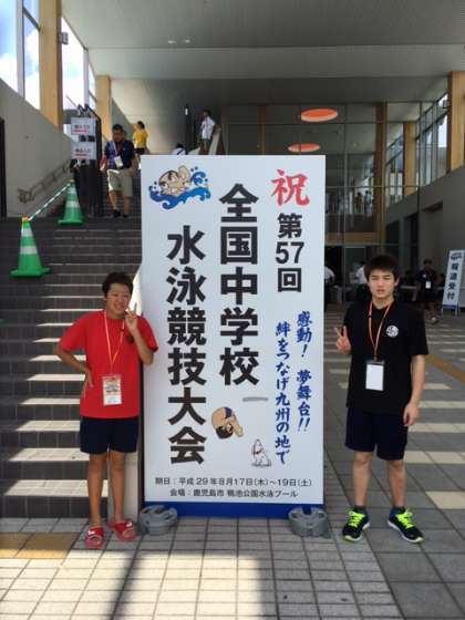 鹿児島市で行われています。水泳の全国中学校大会には、本校から瀬賀選手と丸田選手の2名が出場しています。今日はその1日目、女子800mが行われ、本校瀬賀選手が20位となり、全国20傑入りを果たしました。ご存知のように日本の水泳ジュニアの競技レベルは世界トップレベルですので、とても価値ある20傑入りです。