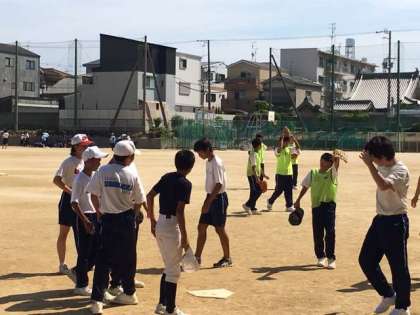 今月26日(土)に行われます、本校の伝統行事、町会対抗「校外ソフトボール大会」に向けて、昨日、今日と午前中、練習会が行われています。暑い中ですが、町会の大人の皆さんの熱心な指導を受けて上達しています。