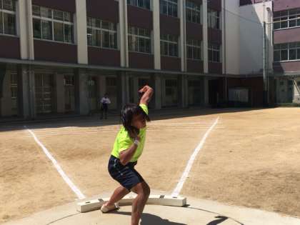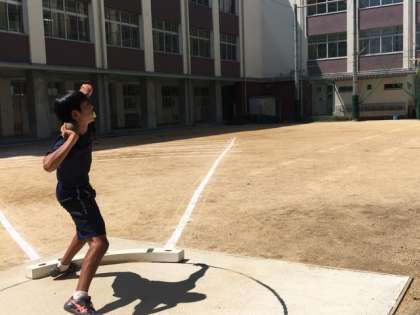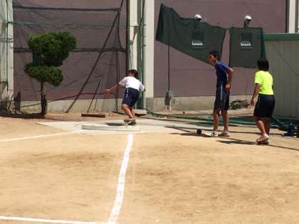 グランドで行われていました陸上競技部の全体練習のあと、フィールド砲丸投げチームは、中庭で居残り練習です。目標は、もう少しで突破できる、ジュニアオリンピックへの出場標準記録を超える記録です。これからの大会、記録会で挑戦して行きます。