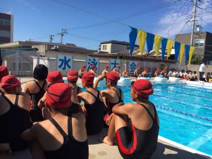 クラス対抗ということで、最初から大変な応援です。泳ぐ人も懸命に頑張っています。