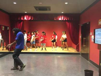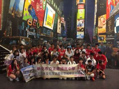 台湾、正徳中学との事前交流会は、2日目を迎えました。今日の目的地は、千里万博公園です。ここでは、「Osaka English Village」(大阪英語村)での共同体験学習です。ここでは、さまざまな英語を使う場面が用意されています。最後はニューヨーク、ブロードウェイでの写真撮影です。