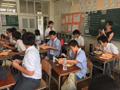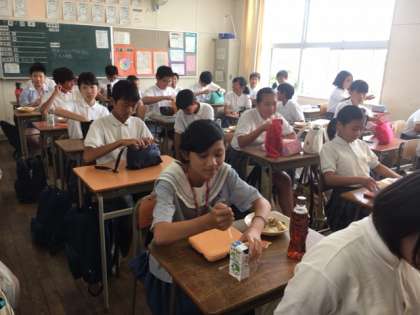 9/4 台湾正徳中 国際交流 「3日目 学校1日目−ホスト生と給食体験」