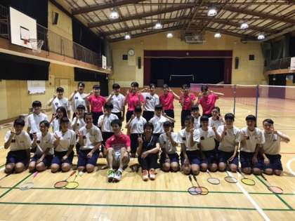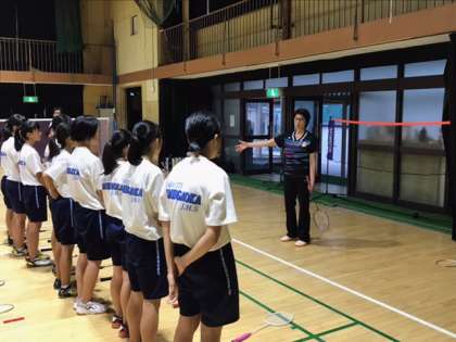 バドミントン部への実技指導は、ポイントを的確に指示され、練習バリエーションも、普段と違う形のものを紹介いただきました。指導を受けた子どもたち、選手も、生き生きと取り組んでいました。