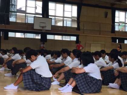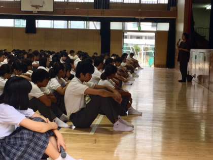 今日、水曜日は、3年生の学年集会日です。定刻、8時25分にきちんと始まりました。