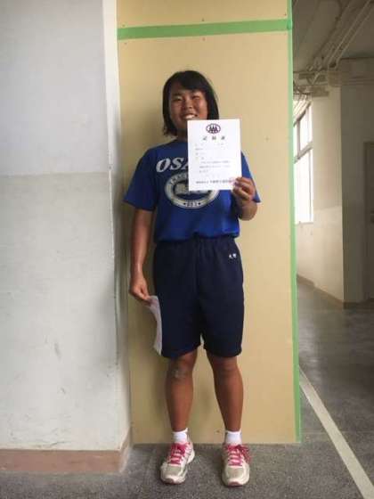陸上競技部では、先日行われました記録会で、女子砲丸投げで大野選手が、出場標準記録を突破、見事、全国ジュニアオリンピックの出場権を獲得しました。卒業生の山本選手に続き、二人目の快挙となりました。ジュニアオリンピックは来月10月に横浜で開催されます。全国での活躍も期待しています。応援よろしくお願いいたします。