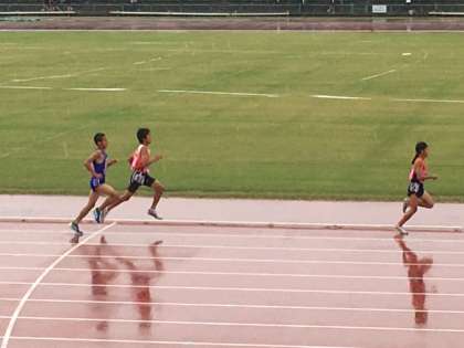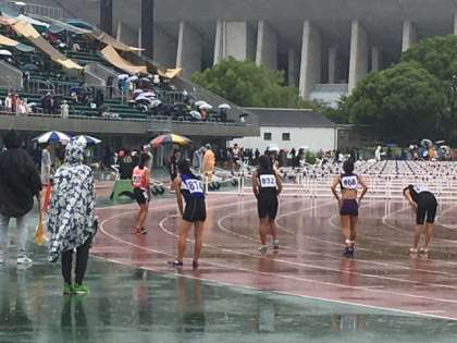 台風の影響で、今日1日にまとめられた、大阪市総合体育大会陸上競技の部は、長居陸上競技場で行われました。あいにくのコンディションでしたが、選手の子どもたちは大活躍しました。