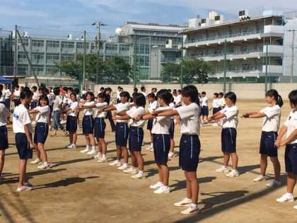 体育大会まであと、1週間余りとなりました。今日6時間目は、その応援練習が行われています。3年生のリーダーが中心となって、振付の練習に取り組んでいます。