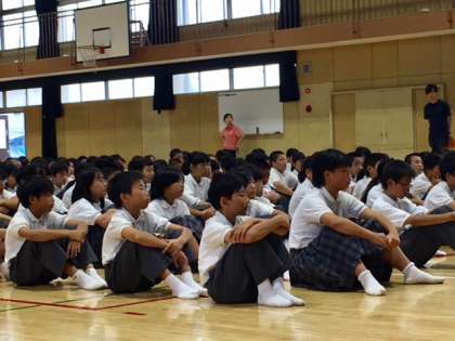 毎週金曜日は、1年生の学年集会です。今日の1年生は、何と、8時20分過ぎには集会が始まりました。