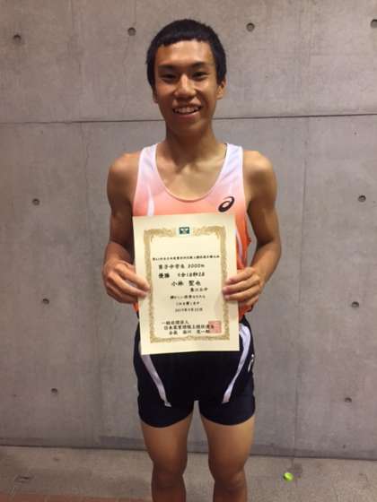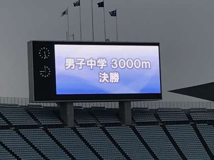 レースは、招待選手ばかりということもあり、速い展開で進みました。本校、小林選手が先頭で引っ張る形となり、終盤に入りました。結局、そのままレースはフィニッシュ、小林選手が優勝しました。タイムは、9分18秒28で、見事な走りでした。また、同じく招待出場していました、原井選手は12位に入り、自己ベストを更新しました。