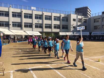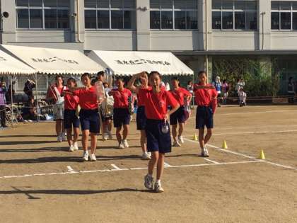 校区、清水丘町会では、「第37回清水丘連合大運動会」が清水丘小学校グランドデ始まりました。本校吹奏楽部の先導で入場行進です。