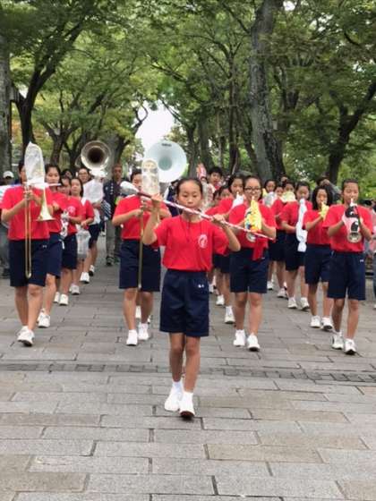 学校では土曜授業が行われていましたが、吹奏楽部では、「2017すみ博」でオープニングパレードの先導をマーチングで行いました。大勢のお客さまの中での行進でしたが、立派に務めを果たすことができました。