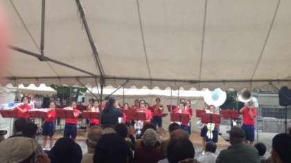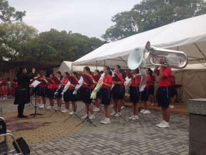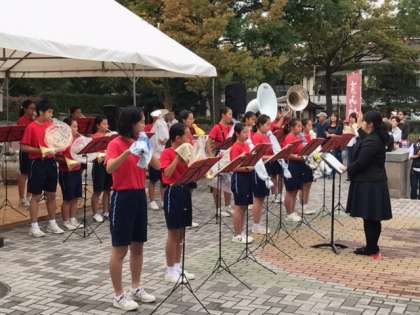 吹奏楽部では、パレード先導に引き続き、屋外コンサートで聴衆の皆さんに演奏を披露しました。こちらも大勢の皆さんから大きな拍手をいただきました。