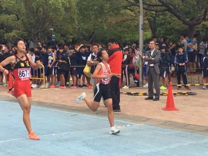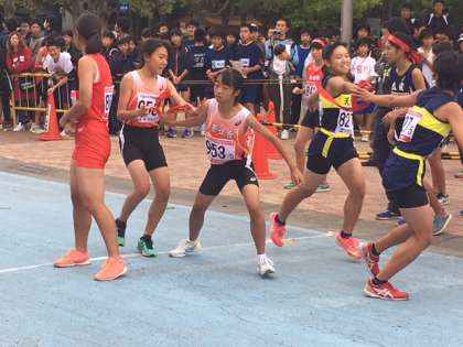 女子は5区5人で、たすきをつなぎます。本校は、順調にたすきを渡し、堂々の大阪市140校中の15位という素晴らしい結果を残しました。惜しくも府大会進出はなりませんでしたが、この次は経験を積んで、さらに上位を狙い、府大会を目指します。