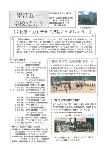 10/17 学校広報 「学校だより10月号」を明日、配布します。