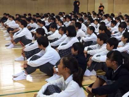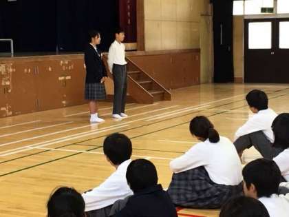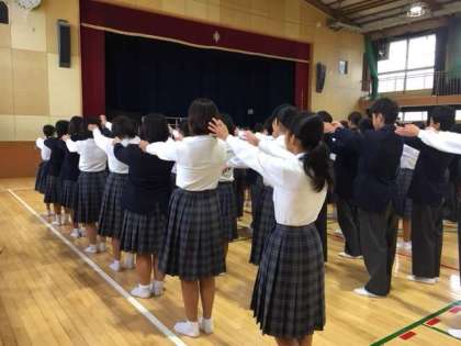 1年生は、金曜日定例の学年集会に臨みました。