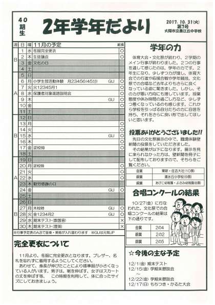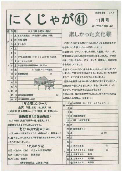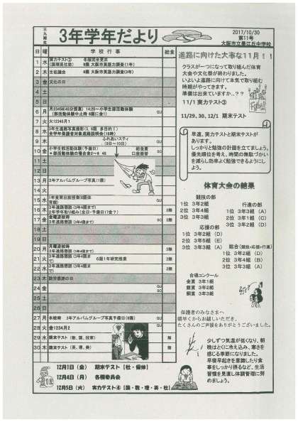 各学年の学年だより11月号が配布されました。行事予定なども、ご確認ください。