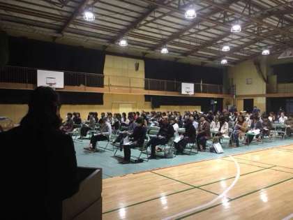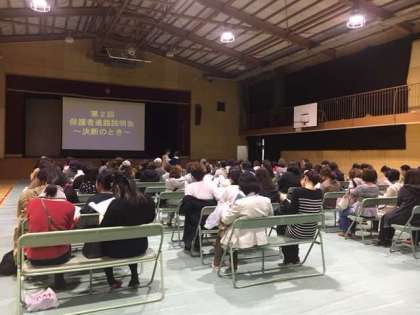 今日8日、午後4時からは、体育館で全学年の保護者の皆さまを対象に、進路説明会を開催しました。会場には準備した椅子が埋まるほど大勢の保護者の皆さまにお越しいただき、関心を寄せていただきました。全体とは別に、今後も進路に関しましては、質問、疑問点などございましたら、随時、担任までご連絡ください。