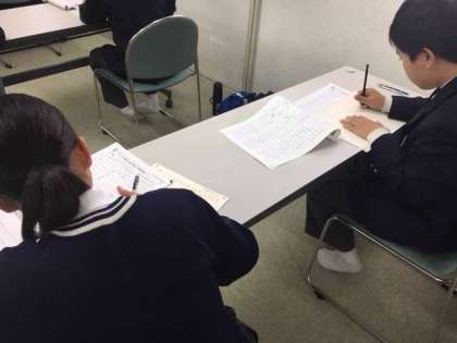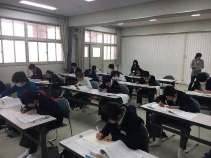 元気アップ学習会では、その取り組みの一つとして、毎年、漢字検定を校内実施し、学習会の一環に位置付けています。今日はその秋の漢字検定が行われました。受験する人たちは真剣な表情で問題に取り組んでいます。