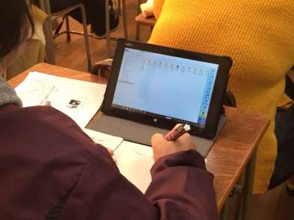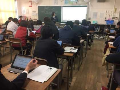本校では、校内設備としての、コンピューターやタブレットの導入が進んでいます。またこの夏からはすべての教室でLAN工事が行われ、インターネット環境が整いました。現在、先生方もその習熟に向けて研修に取り組んでいます。