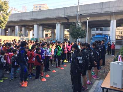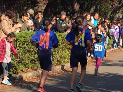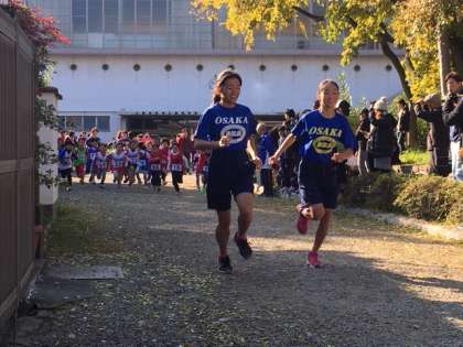 同じく、本日、住吉公園では 「墨江地域連合マラソン大会」が行われ、本校陸上部が先導しました。町会毎に対抗戦で行われ、学年別のレースです。