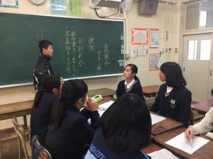 この前の、各種委員会の開催を受けて、生徒会では本部役員や各委員長が集い、12月の「生徒議会」を開催しました。そして学校全体の今月の目標などを話し合いました。