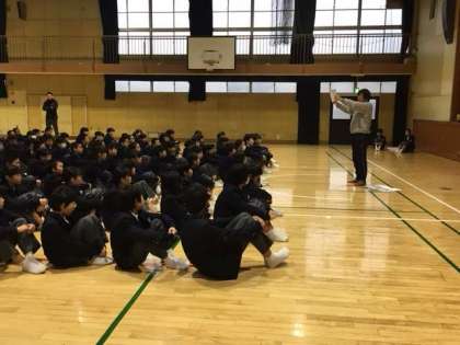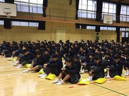 今日、金曜日は1年生の学年集会です。新しい学習サポーターの先生の紹介もありました。