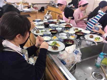 調理は順調に進み、試食会を迎えました。今回の味付けは、調味料もコントロールされていましたが、薄味にしても十分、美味しさがあり、塩味など普段から気をつけなくてはならないことがよくわかりました。また最後には、参加記念品として食育プレートもいただきました。