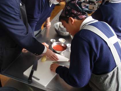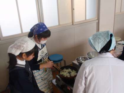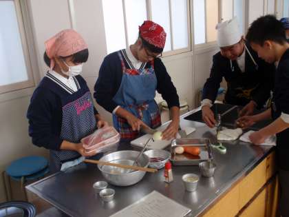 家庭科の授業では、調理実習が行われています。先生の説明をしっかり聞いて、グループの仲間たちと協力して作業に取り組んでいます。うまく完成するでしょうか?