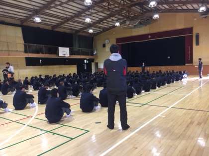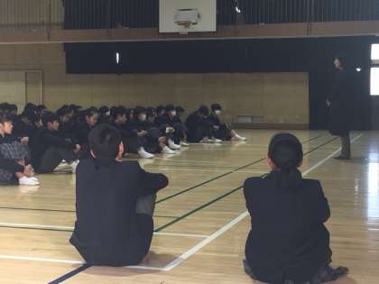 昨日は、寒さの中、大阪市内フィールドワークに挑戦した2年生ですが、今日は朝から、学年集会に臨みました。
