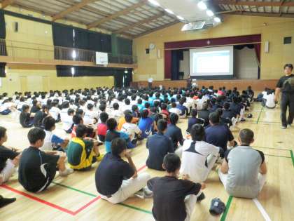 本日21日、体育館で大塚製薬から、専門の担当講師をお招きして