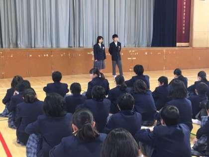 金曜日、1年生の定例の学年集会日です。インフルエンザで全員がそろうことがなかなかできませんでしたが、そろっての学年集会は久しぶりです。