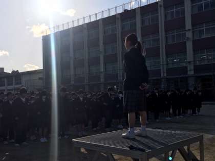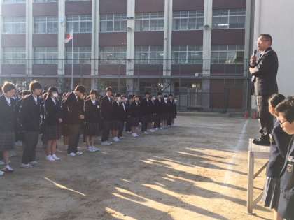 インフルエンザの影響で、しばらく行えませんでした、毎週月曜日の全校集会が、今日、久しぶりに開くことができました。インフルエンザもピークが過ぎて、そろっての集会は気持ちの良いものです。