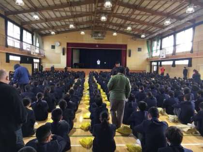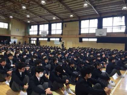 昨日の定例の全校集会で、集合時間や服装など再確認事項が示され、本日の確認のため、「臨時の全校集会」を行いました。