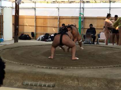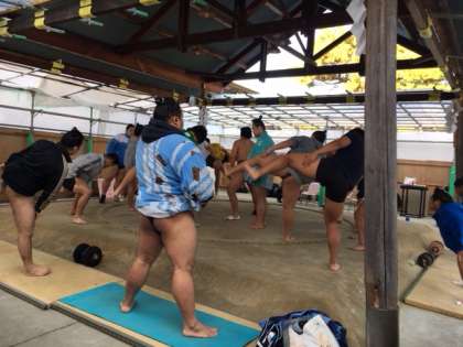 本校校区、住吉大社では、大相撲大阪場所に向けて、立浪部屋の皆さんが稽古中です。稽古は朝7時から始まって、10時くらいまで行われています。マナーを守れば、自由に見学もできます。
