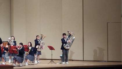 本校吹奏楽部は「僕の名前を」「空も飛べるはず」「Hero」「小さな恋のうた」の4曲を演奏し、会場をわかせました。