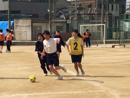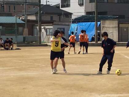 2年生では、学年の終わりにあたり、思い出として球技大会、ミニサッカーを行いました。クラス対抗で、5、6時間目を使って始まりました。