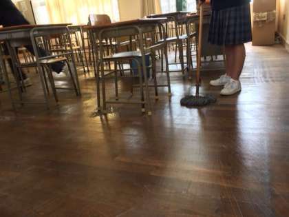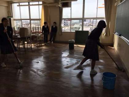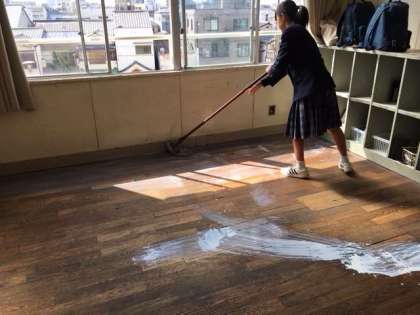 最後に教室では、ワックスがけが行われました。1年間使ってきた教室を次の学年の皆さんのために、きれいにします。