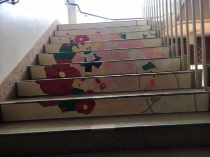 完成した作品は、正面玄関は入って右手の階段です。学校へお越しの節には、ぜひお立ち寄りください。
