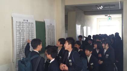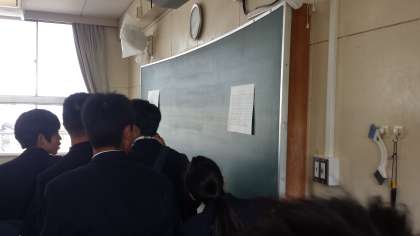 今日、4月9日(月)、平成30年度1学期が始まりました。まずクラス発表です。教室や廊下に掲示された、新クラスを見て、新2年、3年生から大きな歓声が上がりました。