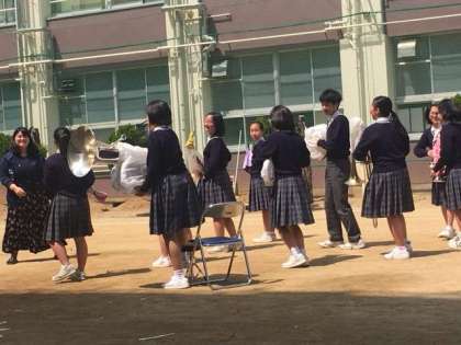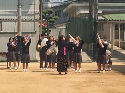 吹奏楽部では、毎年この1学期始め、1年生の歓迎の意味も込めて、お昼休みに「ランチタイムコンサート」を中庭で行っています。今日はその第1回目です。校舎の窓からは鈴なりの子どもたちが応援を送っています。次回は13日(金)です、お楽しみにどうぞ。