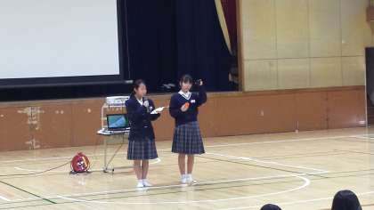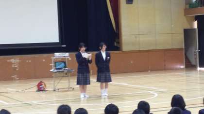 6限目に、1年生に向けて各クラブの先輩たちが部活動の紹介・アピールをしました。1年生のみなさんは、仮入部を経て、自分が3年間続けて活動できるクラブに入部しましょう。まずは、美術部、茶道部、ハンドメイド部です。