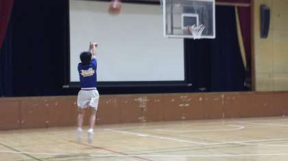 そして、男子バスケットボール部、女子バスケットボール部です。3ポイントシュートです。